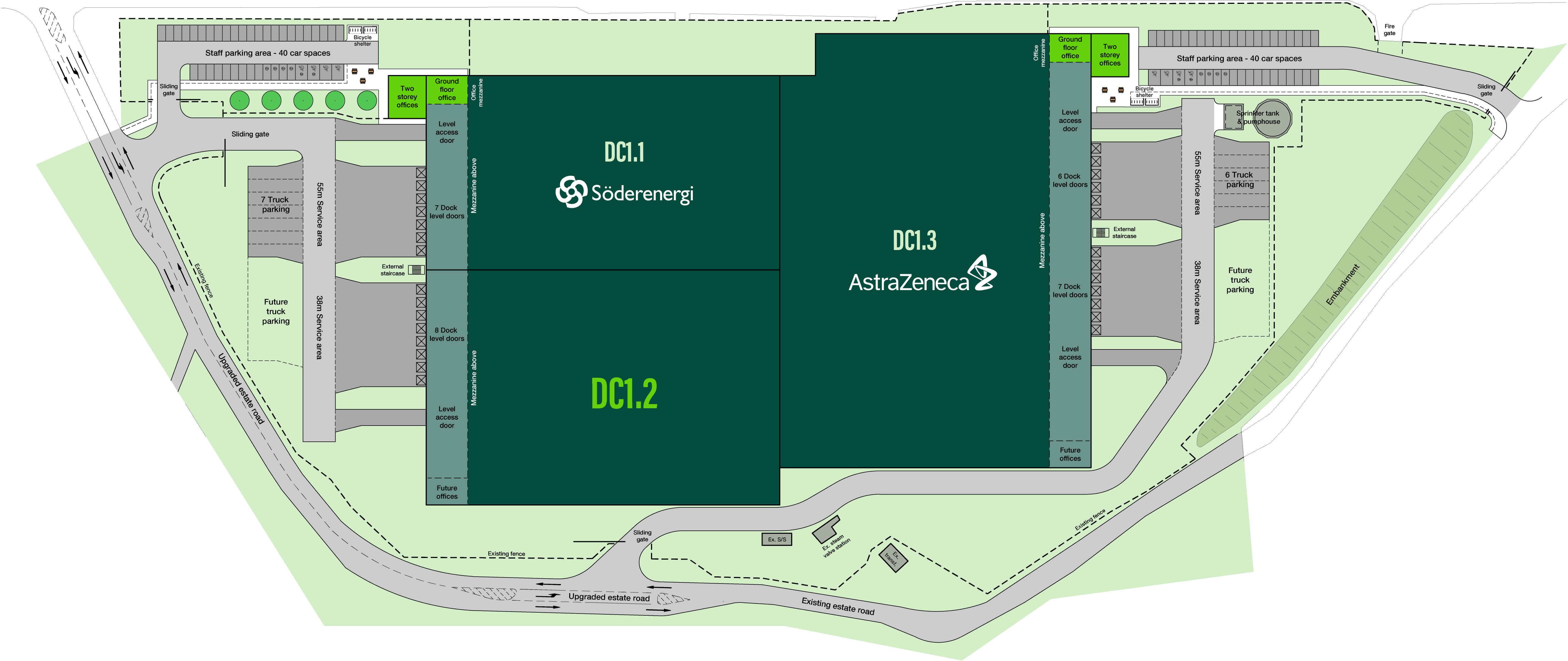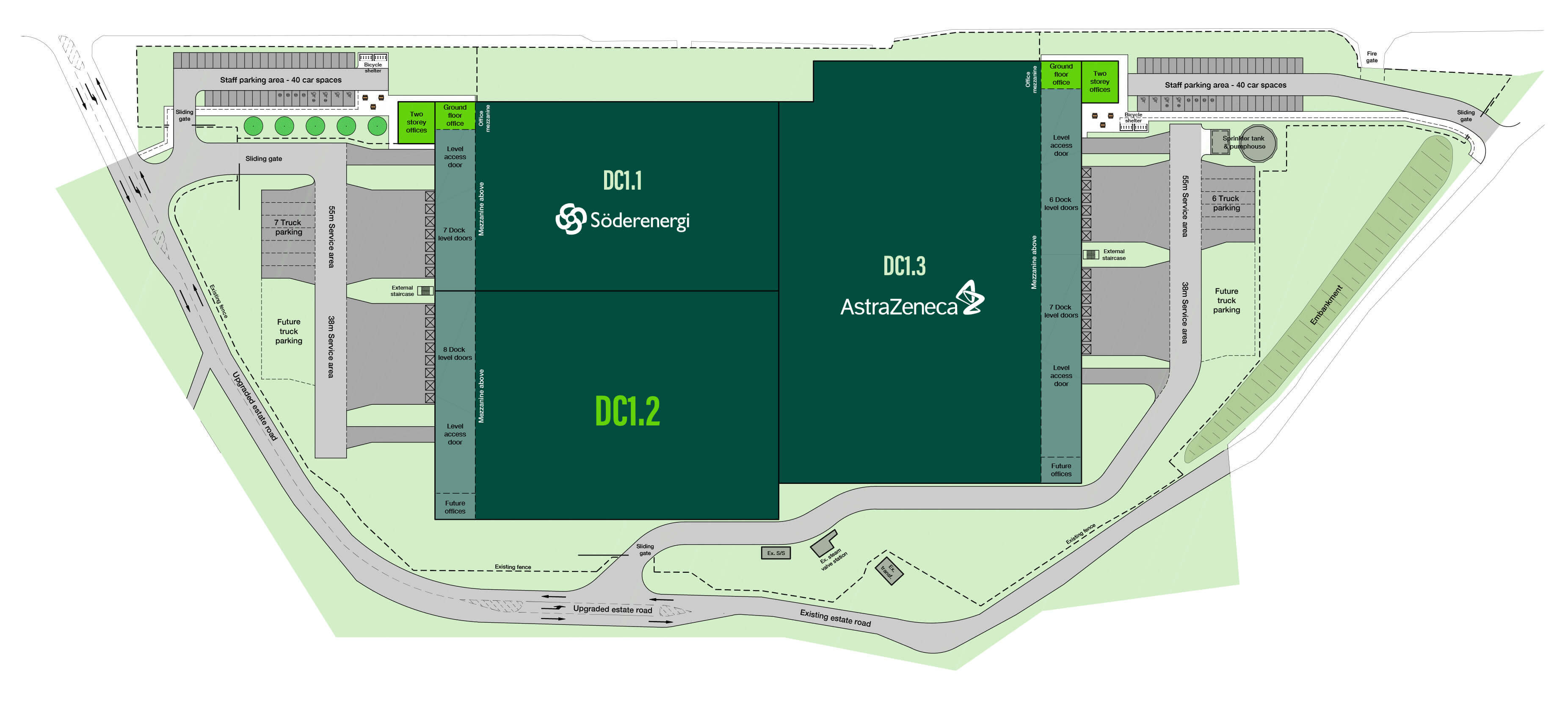The distribution centre will be located in a landscaped setting with trees and planting. Bicycle parking and electric charging are designed into the facilities.